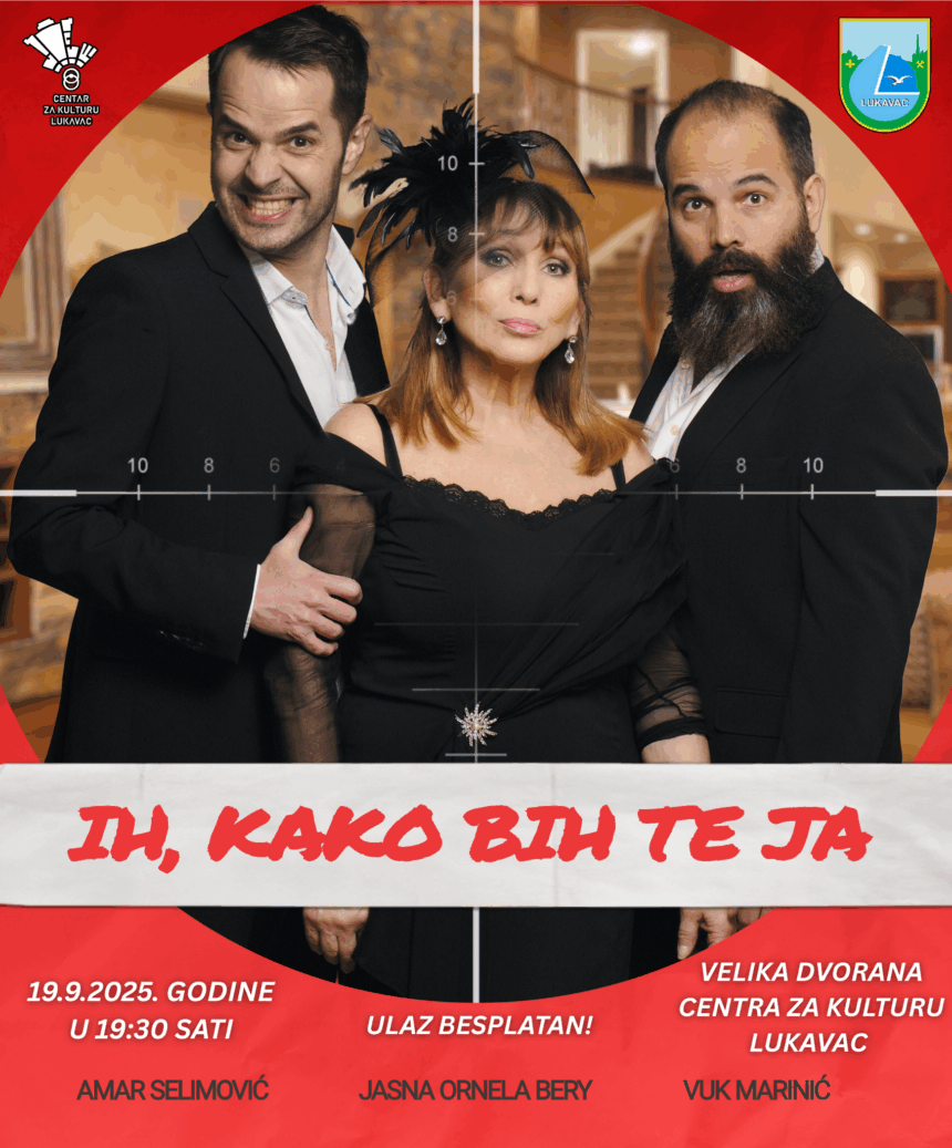 Grad Lukavac, u mjesecu kada slavi svoj dan, publici poklanja događaj koji će nesumnjivo donijeti pregršt smijeha i dobrog raspoloženja. Ne propustite pogledati hit komediju „Ih, kako bih te ja“ u kojoj igra jedna od najpoznatijih i najproduktivnijih bh. glumica Jasna Ornela Bery, u zadnje vrijeme široj publici prepoznatljiva po legendarnoj ulozi Bahre u seriji “Dva smo svijeta različita”.