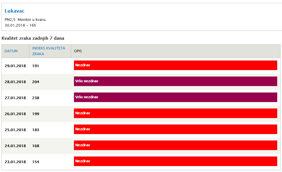 Za kraj treba napomenuti da je danas prestao sa radom i monitor za mjerenje koncentracije PM2.5 čestica u zraku za područje Lukavca. Razlog je enormno zagađenje i koncentracija u zraku ovih izuzetno opasnih čestica.