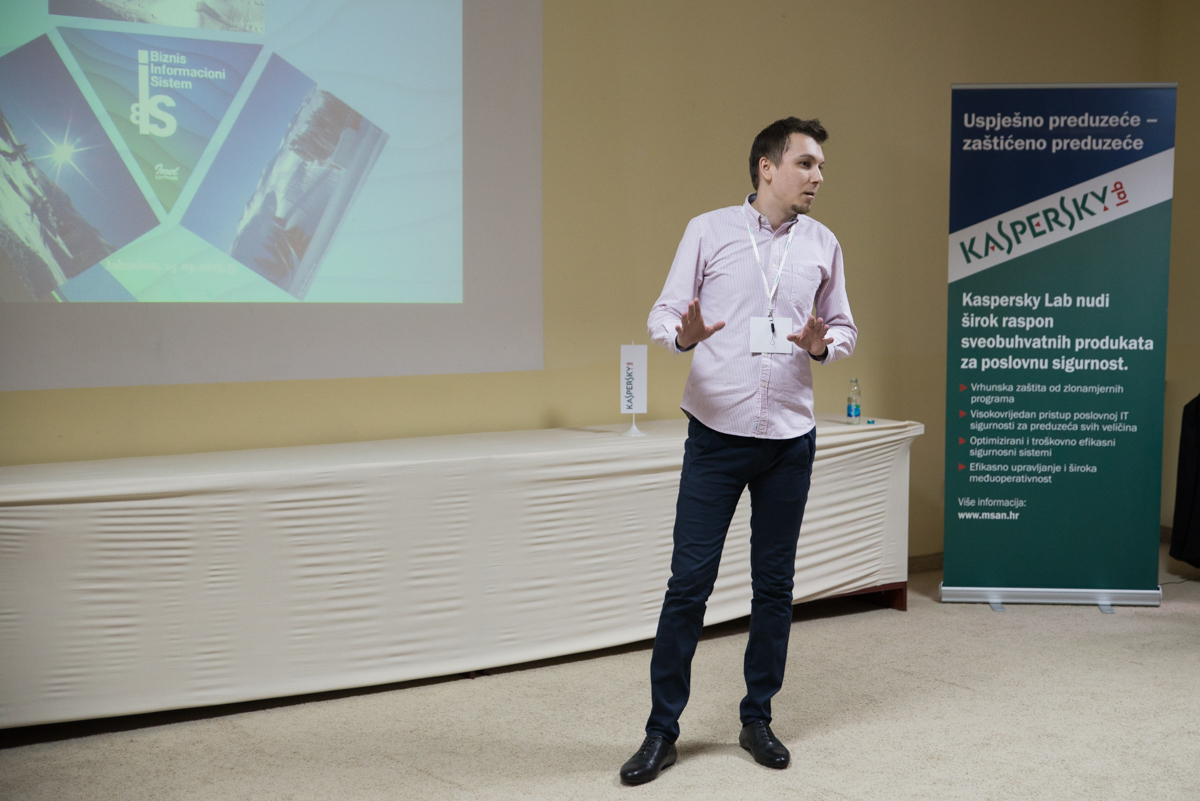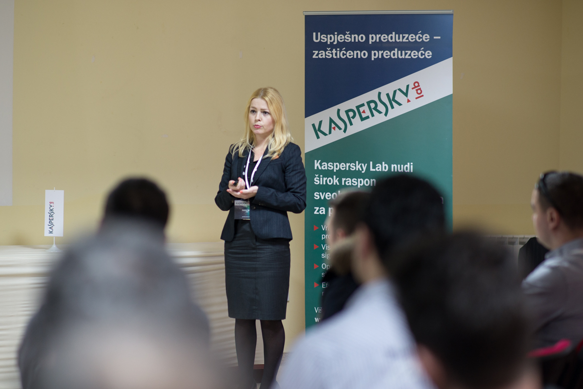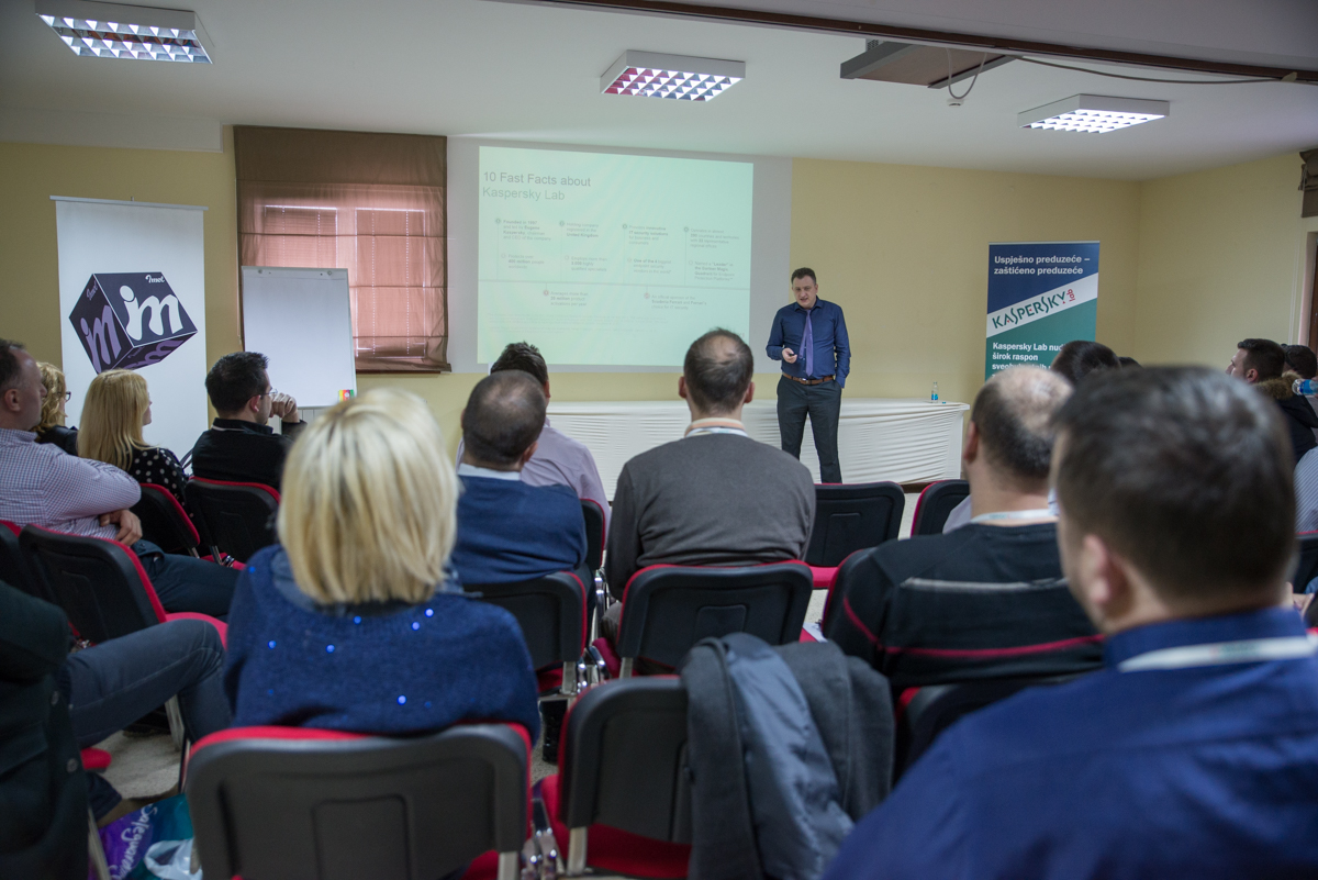 Prisutnima je prezentirao najveće sigurnosne prijetnje u sferi IT-a koje se dešavaju u okruženju te kao lider zaštite predstavio aspekte sigurnosti koji mogu biti efikasne i učinkovite u djelovanju i prevenciji protiv „curenja“ i nestanka provjerljivih informacija. Zaključak i sami primjeri koji su prikazani na današnjoj prezentaciji jesu da se uz relativno mala ulaganja u sigurnosne sisteme, kao što su rješenja iz Kaspersky LAB-a, mogu spriječiti enormne štete koje su često nepopravljive.