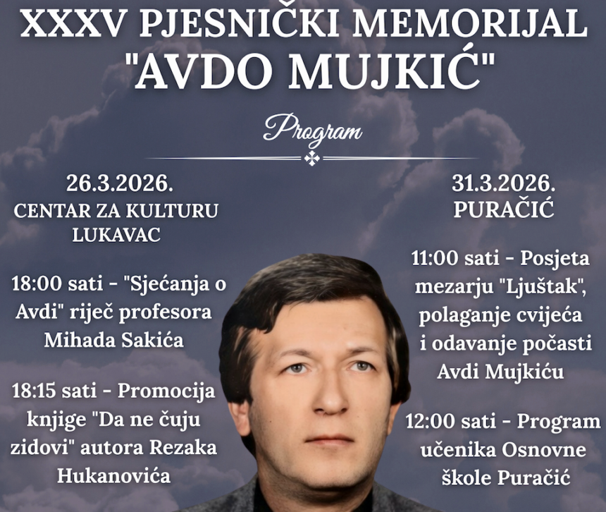 U znak trajnog sjećanja na pjesnika Avdu Mujkića i ove godine okupljamo se kroz riječ, umjetnost i zajedništvo, njegujući ono najvrjednije što je ostavio, iskrenu, duboko ljudsku poeziju.