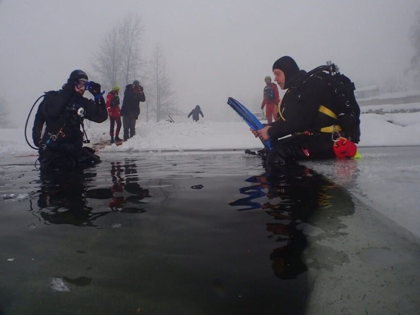 Članovi Eko-ronilačke grupe invalida iz Lukavca i Gorske službe spašavanja iz Srebrenika su u subotu 10. januara 2026 godine na jezeru Ontario Bistarac zaronili ispod zaleđene površine jezera.