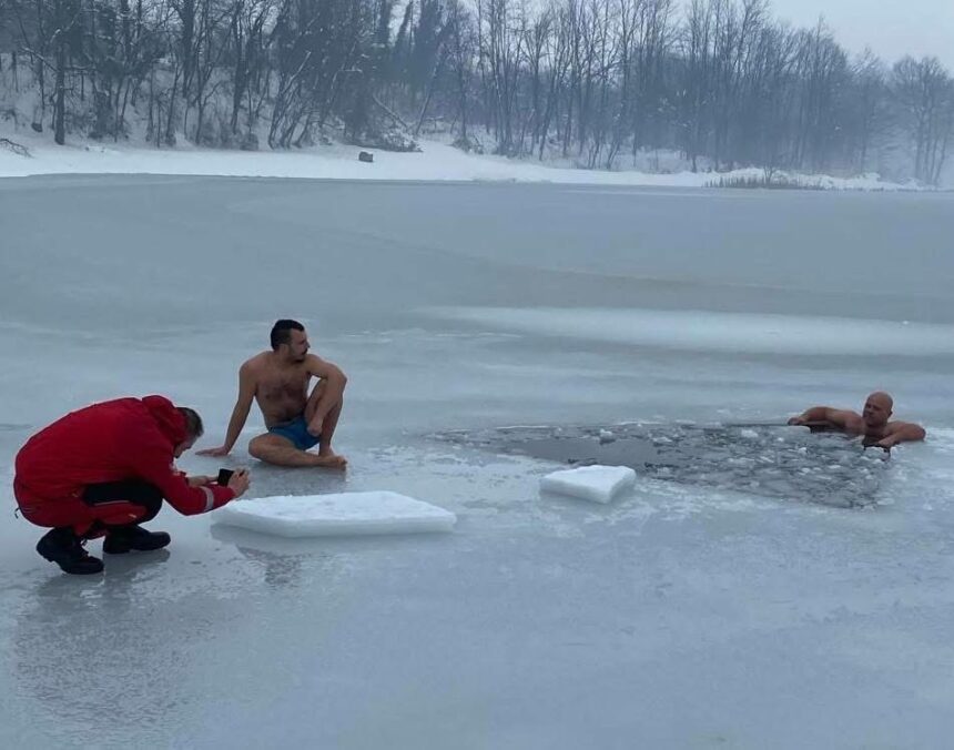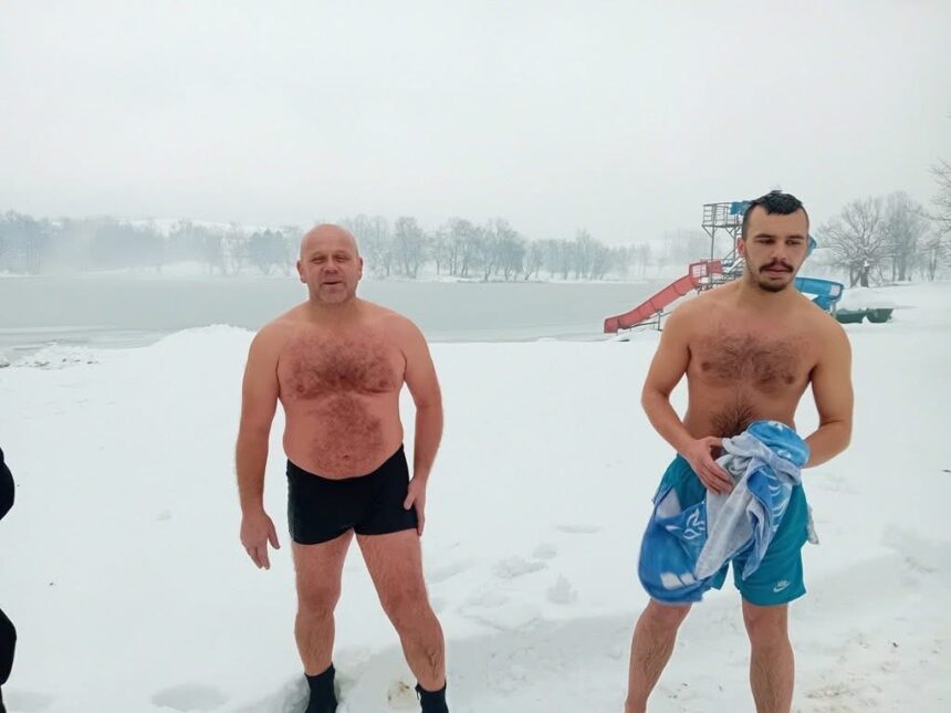 Nakon ronjenja najhrabriji su se i okupali u zaleđenom jezeru.