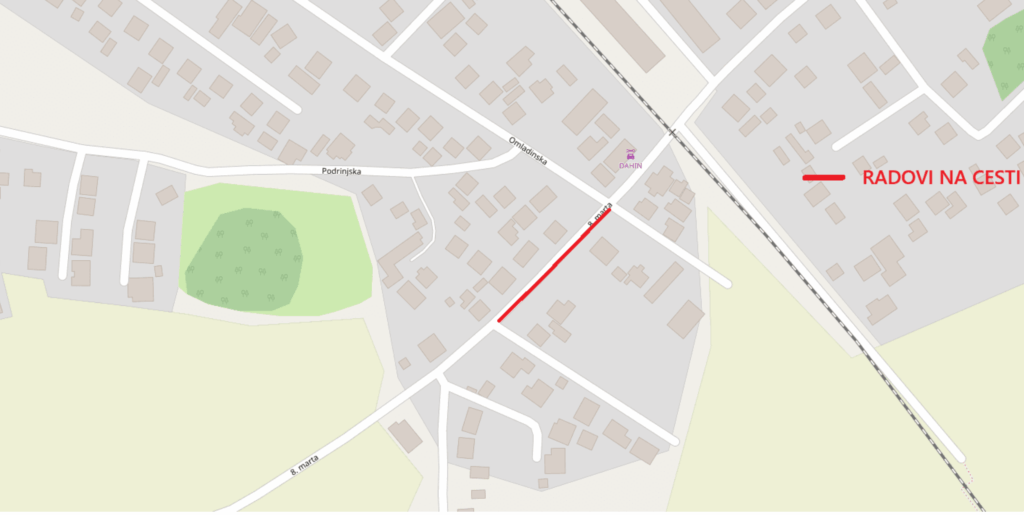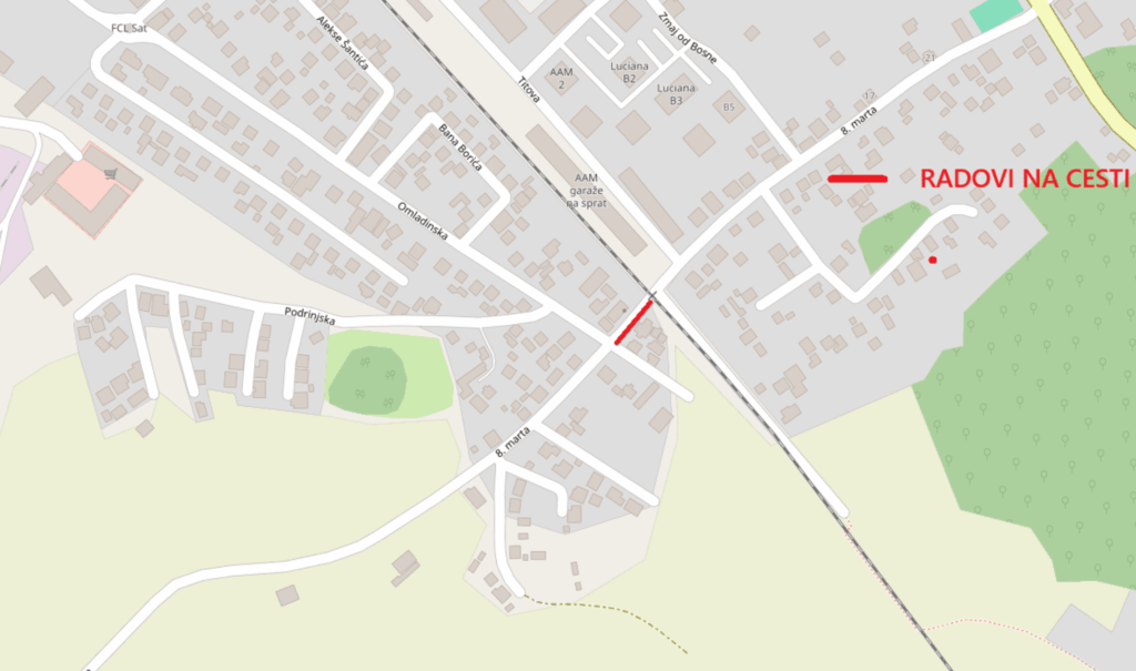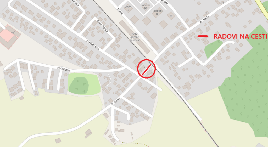 Obavještavaju se građani o privremenoj izmjeni režima saobraćaja u dijelu ulice Osmog marta (od raskršća sa ul. Omladinska do pružnog prelaza) u smislu totalne obustave saobraćaja zbog izvođenja građevinskih radova po ugovoru za sanaciju dijela ulice Osmi mart od pružnog prelaza do magistralnog puta M4.