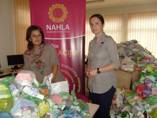 U školi je prikupljeno 42 paketa osnovnih higijenskih potrepština za žene, što je dostavljeno i predano u EC “NAHLA” 8.septembra 2015.