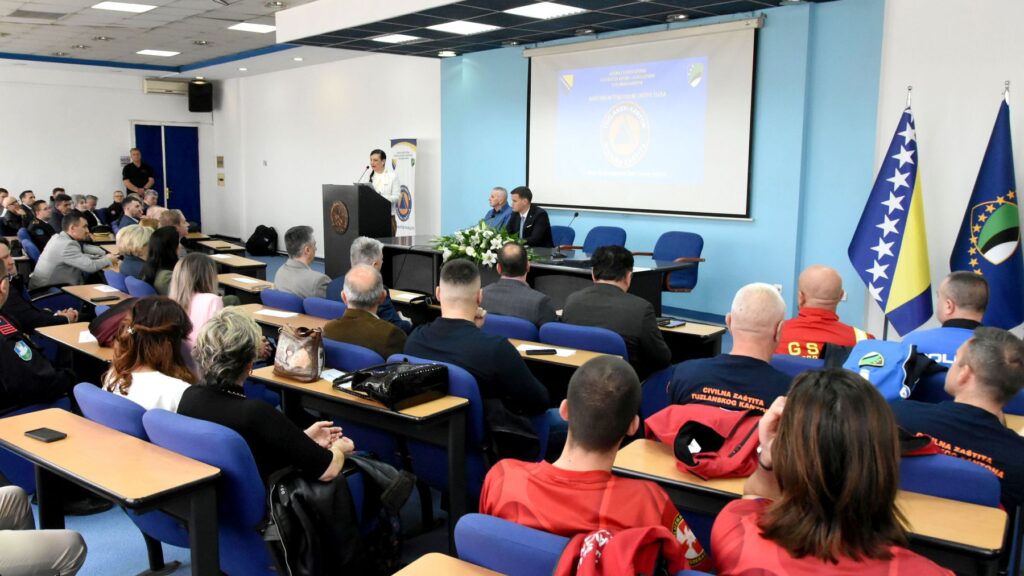 „Danas moramo istaknuti kontinuirana ulaganja Vlade Tuzlanskog kantona u oblast civilne zaštite. Tokom 2022. i 2023. godine izdvojeno je 1,3 miliona KM za opremanje gradskih i općinskih struktura civilne zaštite, te 1,2 miliona KM za sanaciju šteta na lokalnoj infrastrukturi. U 2024. godini pomagali smo ondje gdje je bilo najpotrebnije, općinama i gradovima u Hercegovini i srednjoj Bosni. Jablanici, Konjicu, Fojnici, Kiseljaku i Kreševu smo iz Kantonalnog budžeta poslali pomoć vrijednu pola miliona KM za otklanjanje posljedica prirodne nesreće iz oktobra 2024. godine. Tokom 2025. godine fokus nam je bio usmjeren na jačanje vatrogastva, opremanje vatrogasnih jedinica i nabavku vatrogasne opreme, za što je Vlada Tuzlanskog kantona izdvojila milion KM“, kazao je Halilagić naglašavajući i važnost edukacije i kadrovskog jačanja vatrogasnih jedinica, uz poruku da su ljudi ključni resurs sistema zaštite i spašavanja.
