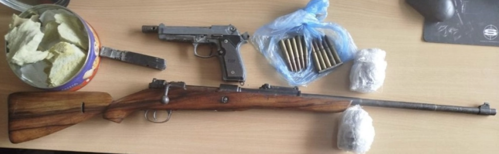 Prilikom pretresanja pronađeni su i privremeno oduzeti slijedeći predmeti: 4 pištolja različite marke i kalibara, 1 puška-karabin, 3 ručne bombe, 45 komada municije za pištolj različitih kalibara, 18 komada puščane municije različitog kalibra, 5 okvira za pištolj, 4 noža, elektrošoker, mobilni telefon i drugi predmeti koji se dovode u vezu sa počinjenjem gore navedenih krivičnih djela.