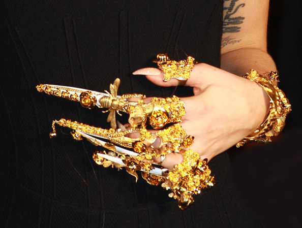 Na rukama je nosila stilizirane zlatne rukavice koje su također odskakale od ove verzije mirnog izgleda ekscentrične pjevačice.