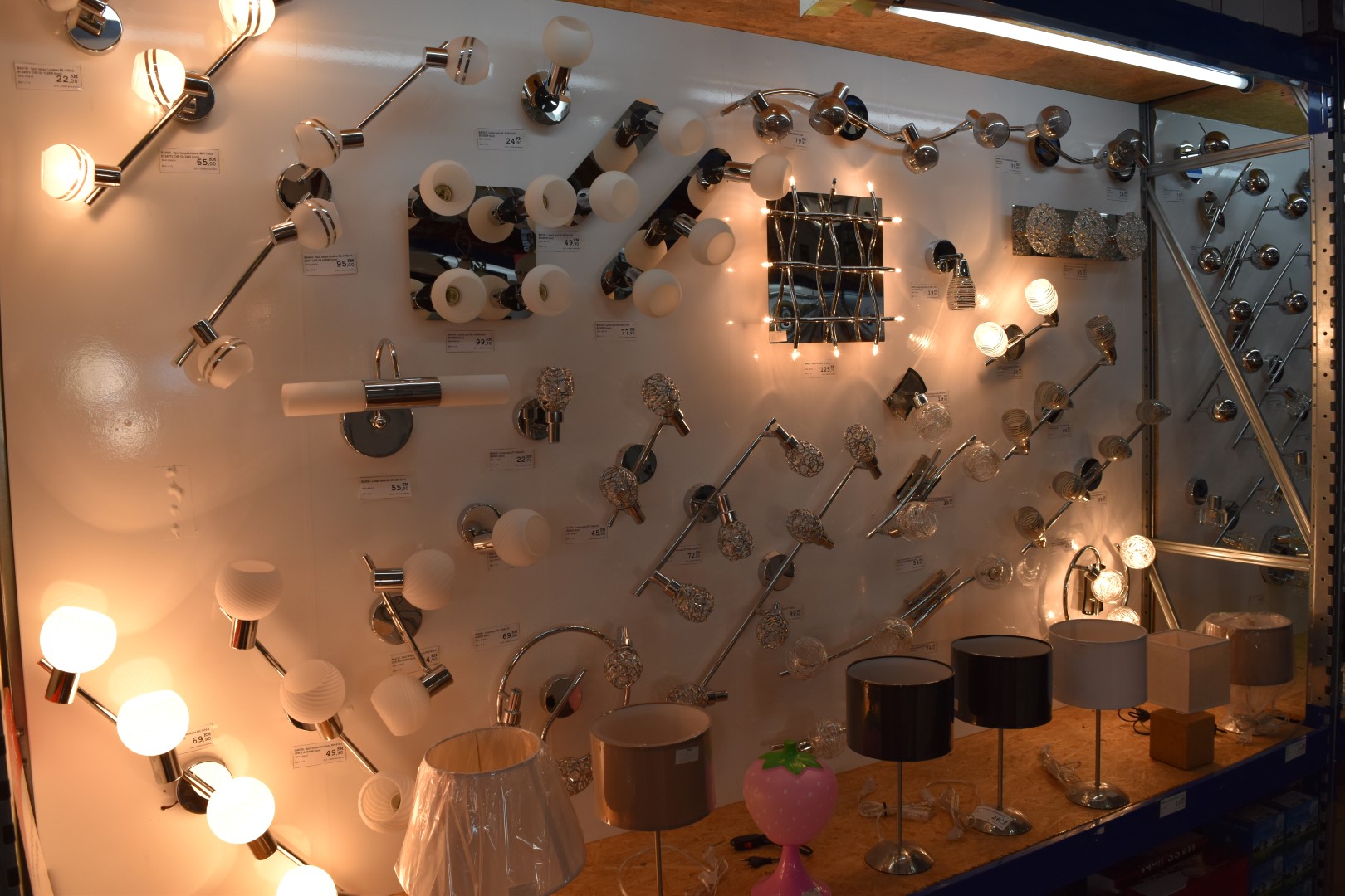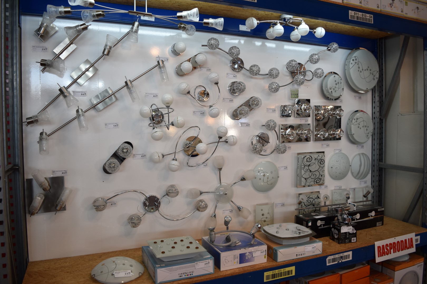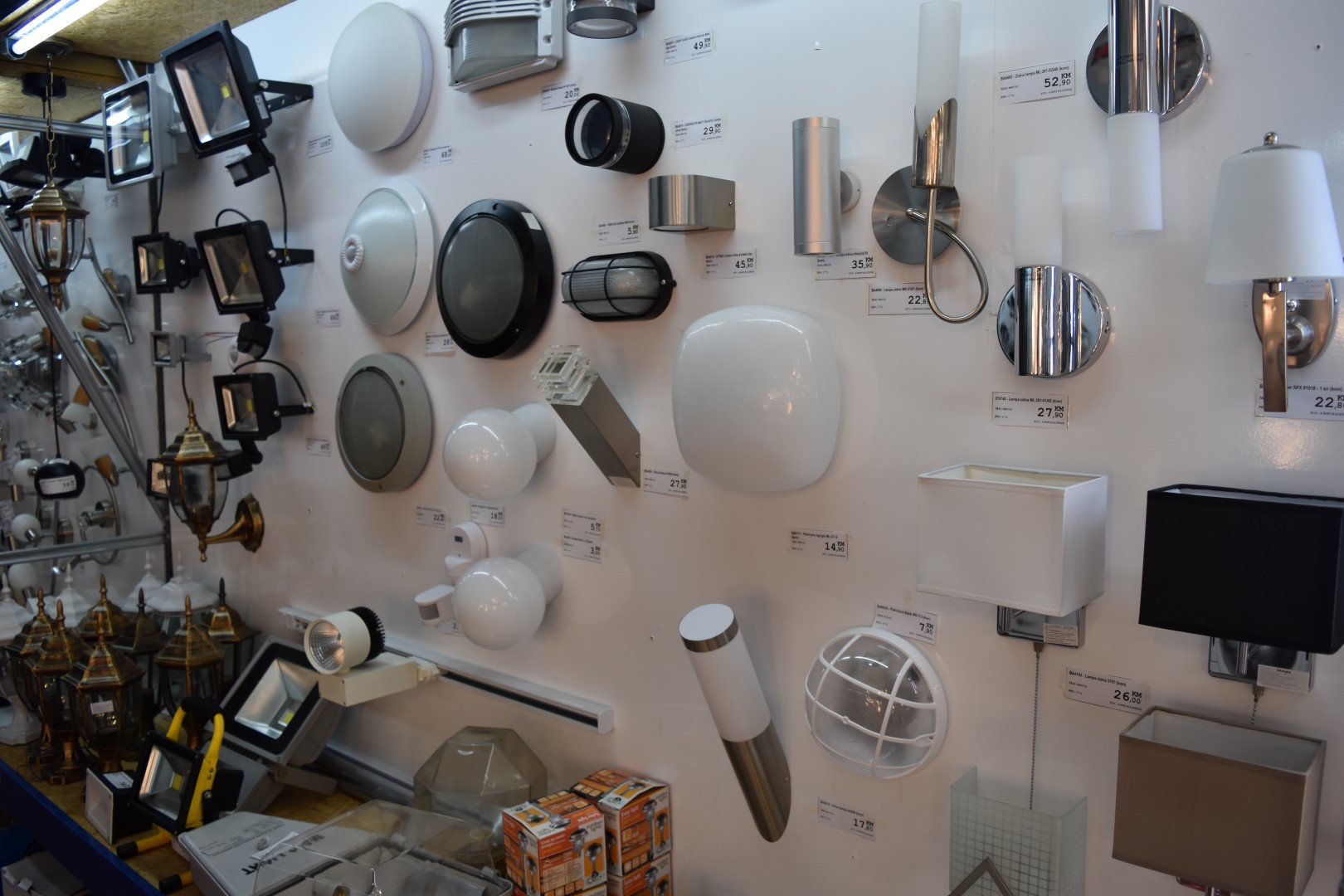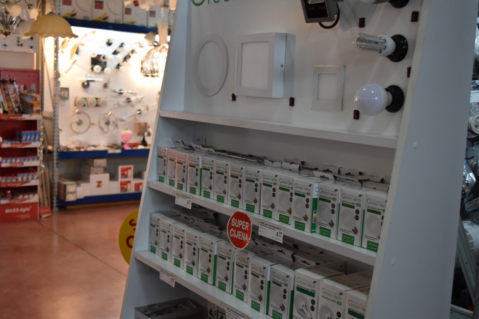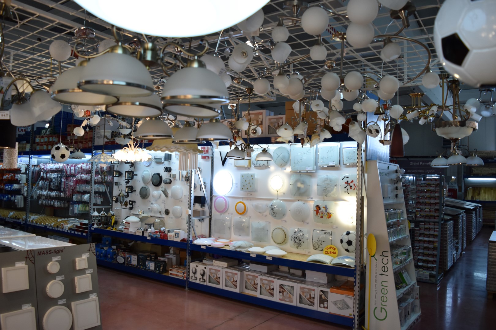 U ponudi su lusteri po super cijenama, veliki izbor plafonjera, spot lampi, podnih lampi, stolnih lampi, kao i veliki izbor vrtne rasvjete kao i širok asortiman sijalica led i halogenih kao i ponuda ugradnih i nadgradnih led panela četvrtastog i okruglog oblika po super akcijskim cijenama.