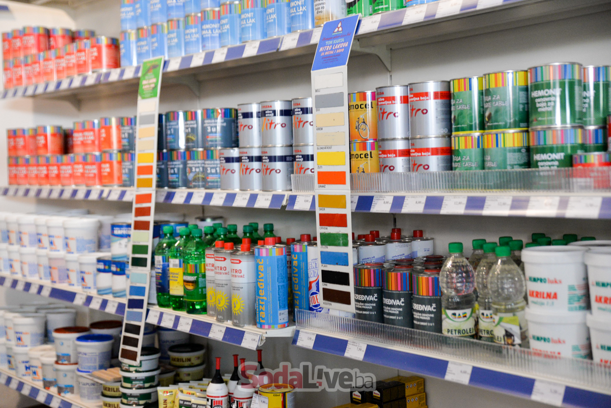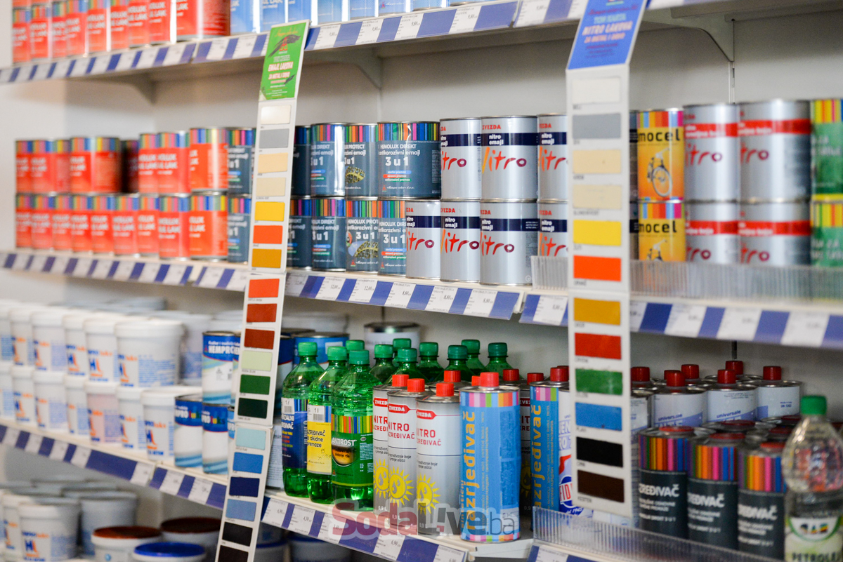 Osim boja, lakova, fasada i hidroizolacija kupci imaju veliki izbor popratnog asortimana, pribora i alata renomiraniranih proizvođača. Riječ je o specijaliziranoj trgovini u kojoj će vam i mašinski izmiješati i iznijansirati boje.